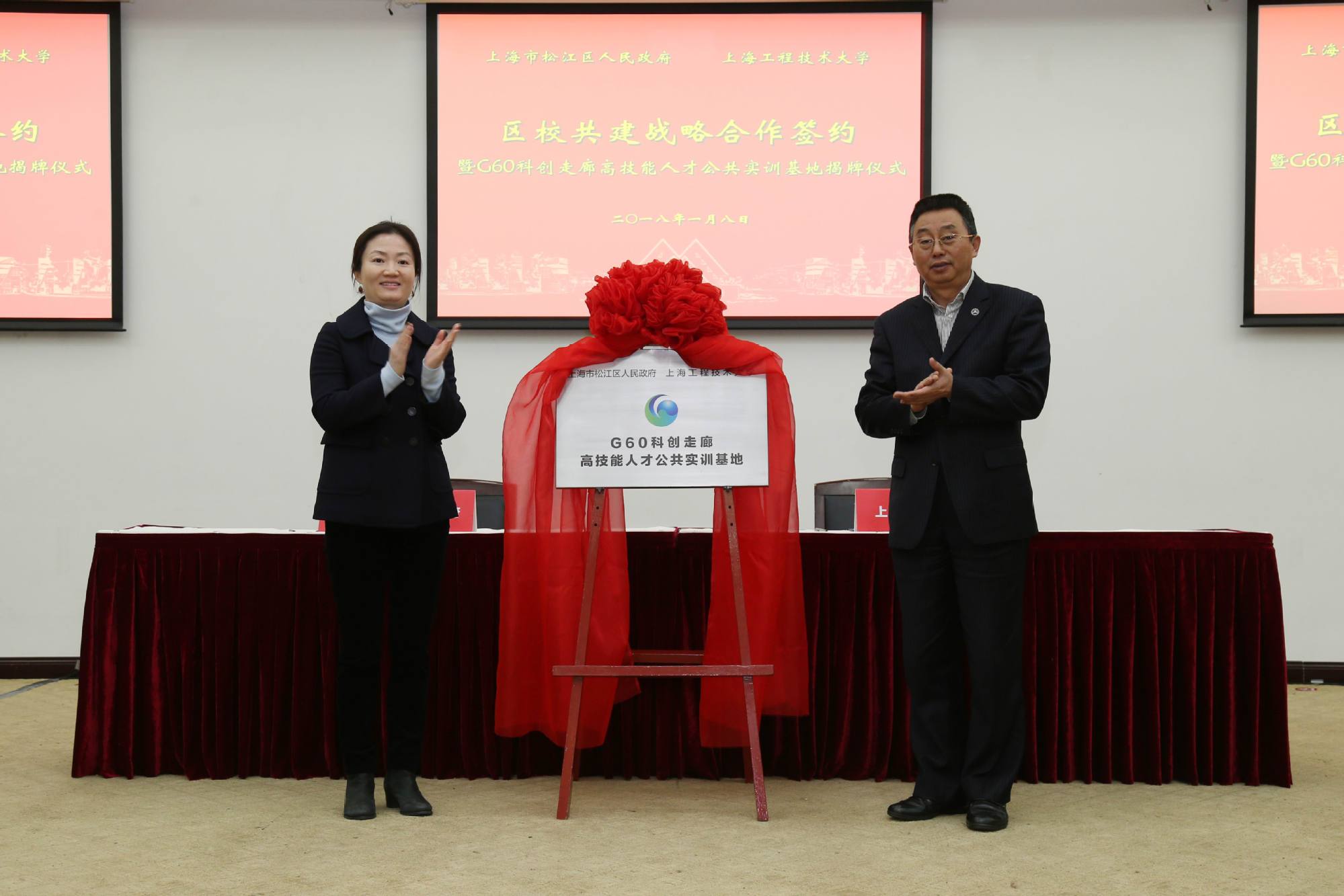 为进一步深化区校合作,充分发挥我校和松江区的各种资源优势,积极助力松江G60科创走廊建设,搭建资源共享、发展共赢的平台,1月8日上午,松江区委书记程向民,区委副书记、区长陈宇剑,区人大常委会主任唐海东,区政协主席邵林初,区委副书记刘其龙,区委常委、组织部长彭琼林,副区长龙婉丽,副区长陈小锋,各区委办局、广富林街道主要负责同志一行莅临我校,与校党委书记李江,校党委副书记夏斯云、范永春,副校长姚秀平、鲁嘉华、王岩松以及相关职能部门负责人,就进一步深化区校合作共建事宜深入探讨与交流,签署了深化区校战略合作协议,并共同为G60科创走廊高技能人才公共实训基地揭牌。