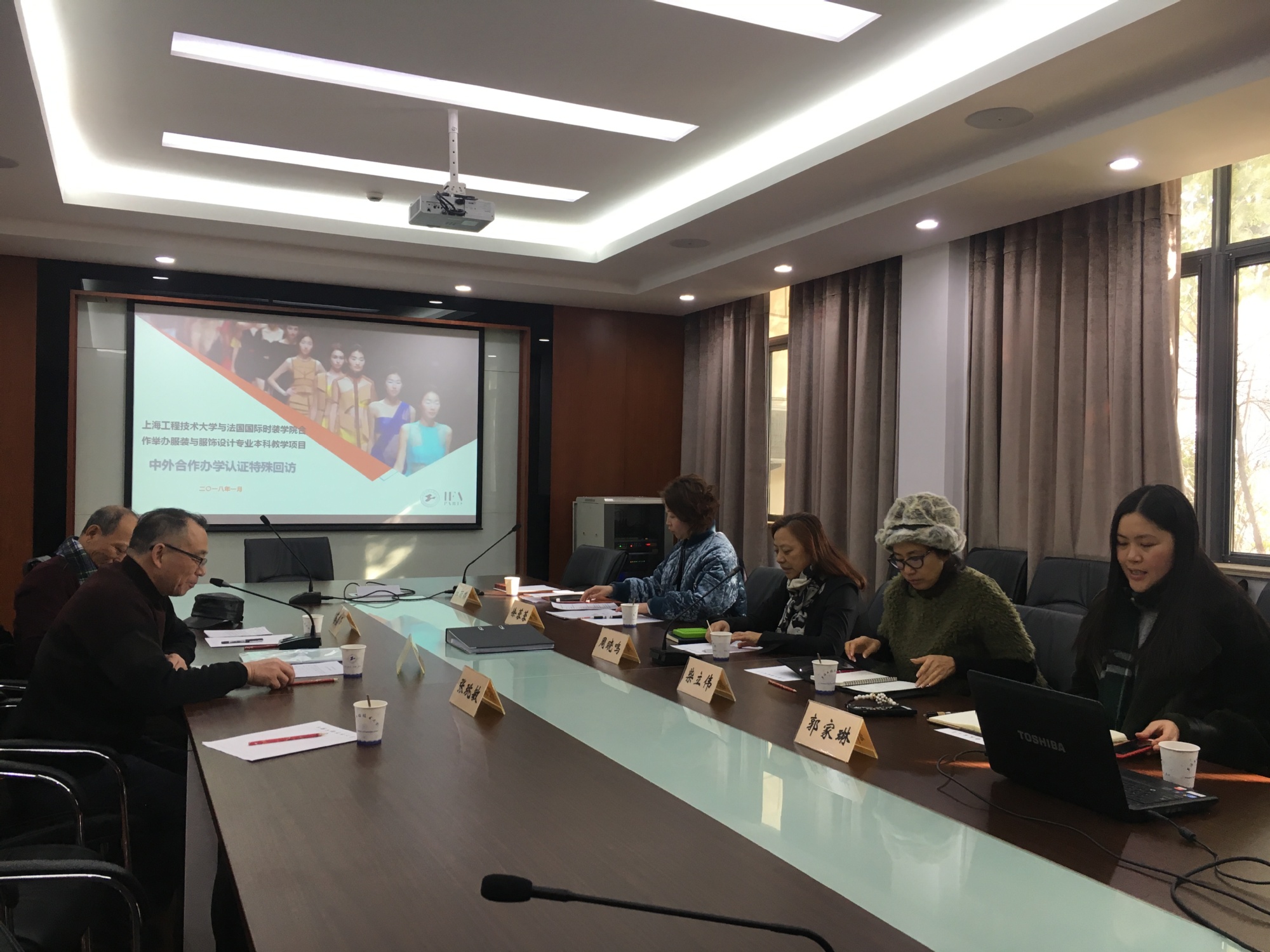 1月11日,上海市教育评估协会专家组一行3人来到长宁校区,对上海工程技术大学与法国国际时装学院合作举办服装与服饰设计(原艺术设计(服装设计与工程))专业进行项目认证中期复查的特殊回访。学院中外双方院长周晓鸣和柴立伟、教学副院长徐蓉蓉及部分教师代表参与了此次回访。