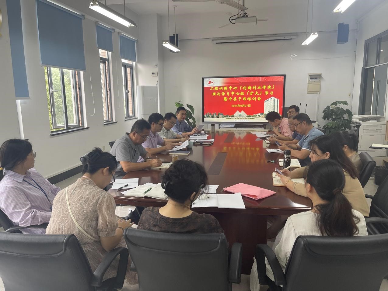 9月27日,工程训练中心党总支召开理论学习中心组(扩大)学习会暨中层干部培训会,专题学习习近平总书记在2024年全国教育大会上的重要讲话精神。工训中心党总支宣传委员、副主任万军领学,中心党总支书记王成涛主持,中心党总支理论学习中心组成员及全体科职级干部参加学习。