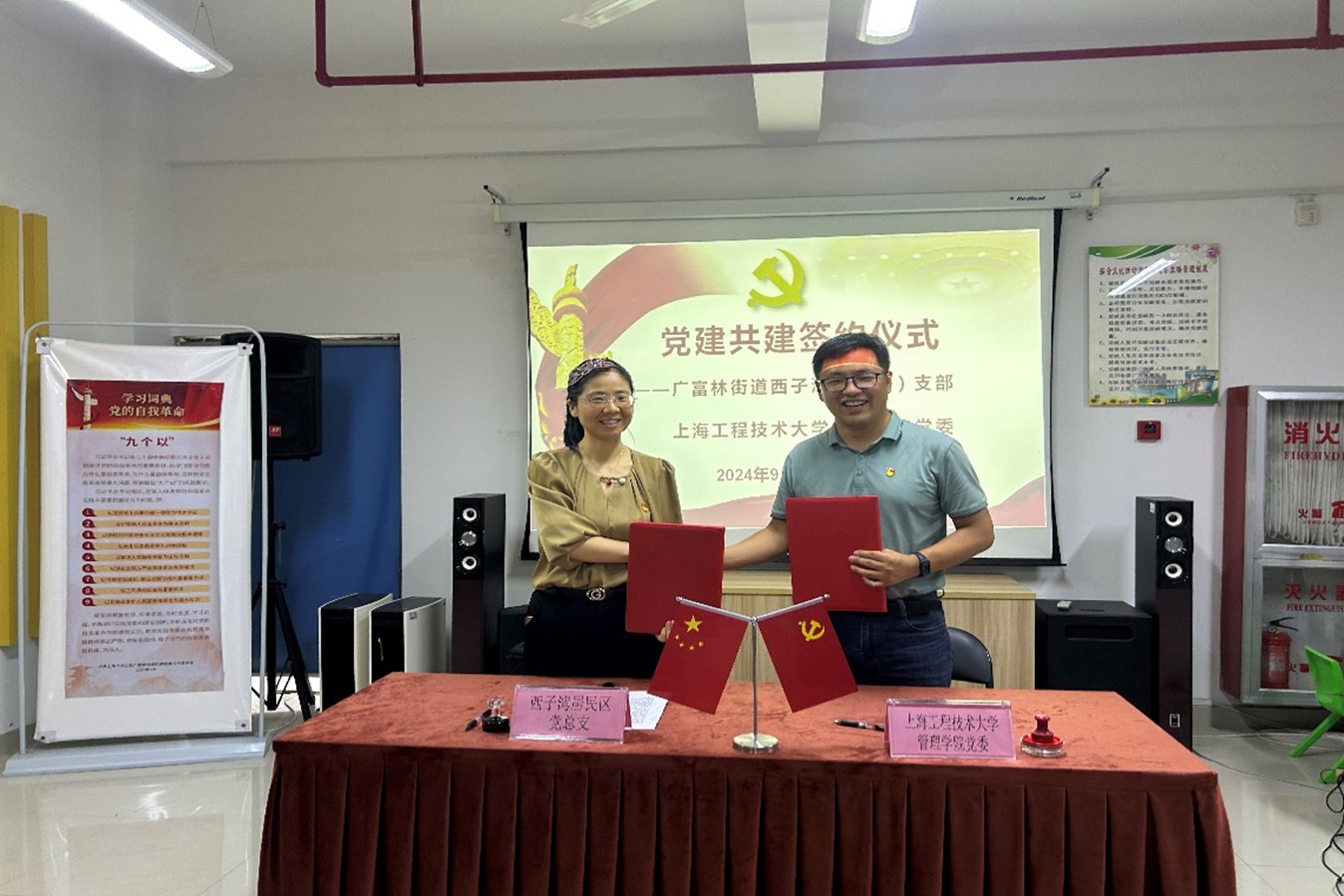管理学院党委副书记张强和广富林街道保利西子湾社区党总支书记郑丽娟代表双方签订了党建共建协议,党建结对共建以“优势互补、资源共享、共同提高、共建和谐”为原则,围绕“党建促共建,共建促发展”这一主题,将定期开展共建交流互动,加大党建互助力度,全面提升区域化党建水平。