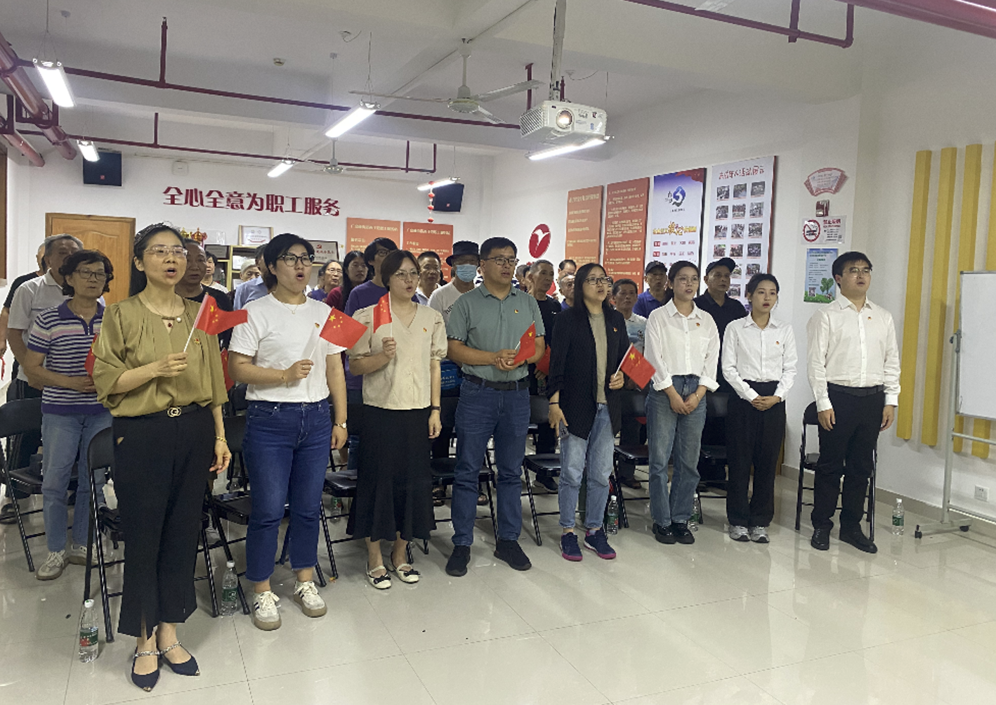 在老党员的带领下,党员们齐唱红色歌曲《没有共产党就没有新中国》《歌唱祖国》《团结就是力量》,一首首耳熟能详的经典红歌,唱响了时代主旋律,表达了对党、对祖国最真挚的情感,抒发了对党、对新中国成立75周年的祝福。