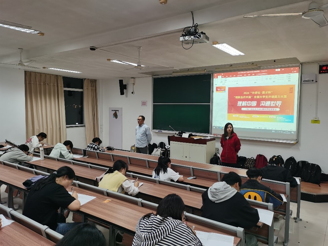 为引导当代大学生理解当代中国,增强学生国际传播意识和外译能力。10月9日晚,由外国语学院主办的2024“外研社杯”“理解当代中国”全国大学生外语能力大赛英语组笔译赛项上海工程技术大学校内选拔赛在教学楼F102和F106教室举办,来自学校不同专业的150余名学生参加了本次比赛。
