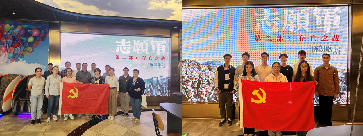 为庆祝中华人民共和国成立75周年,增强爱国主义情感,电子电气工程学院党政办实验中心党支部和学生第一党支部于10月10日组织党员开展观看电影《志愿军:存亡之战》活动。
