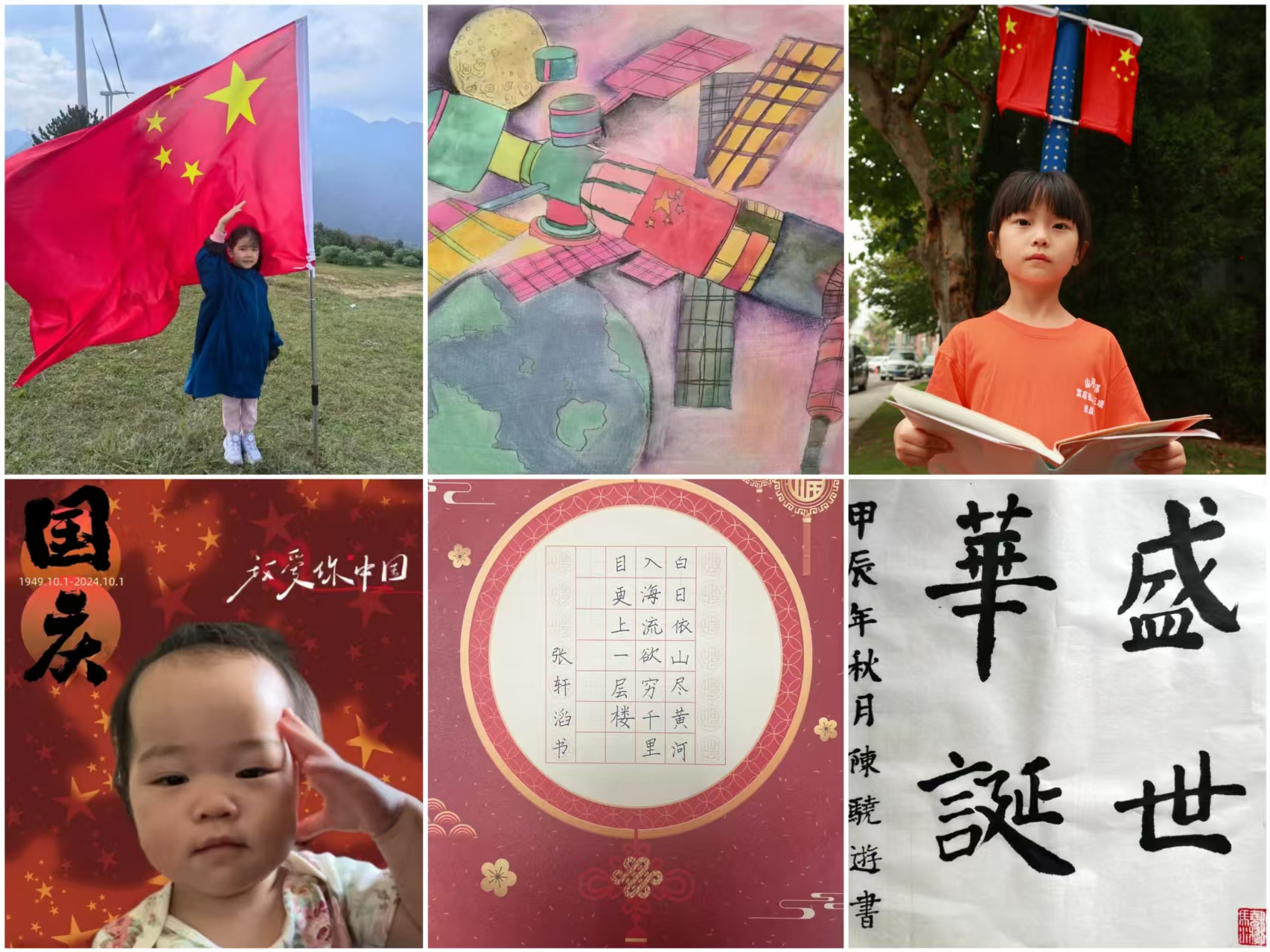 此次活动从9月底至10月初持续开展,活动邀请学院的娃爸和娃妈们跟孩子们共同参与,孩子们无论年龄大小均可以参加。学院的程二代孩子们以绘画、书法、摄影、视频等丰富多彩的形式积极地投入到此次活动中,各类作品展现了浓厚的爱国情怀。他们有的用五彩缤纷的画笔描绘心中美丽的祖国,有的用沾满笔墨的毛笔写下心底的祝福,有的敞开他们无比响亮的声音表达对祖国的热爱!