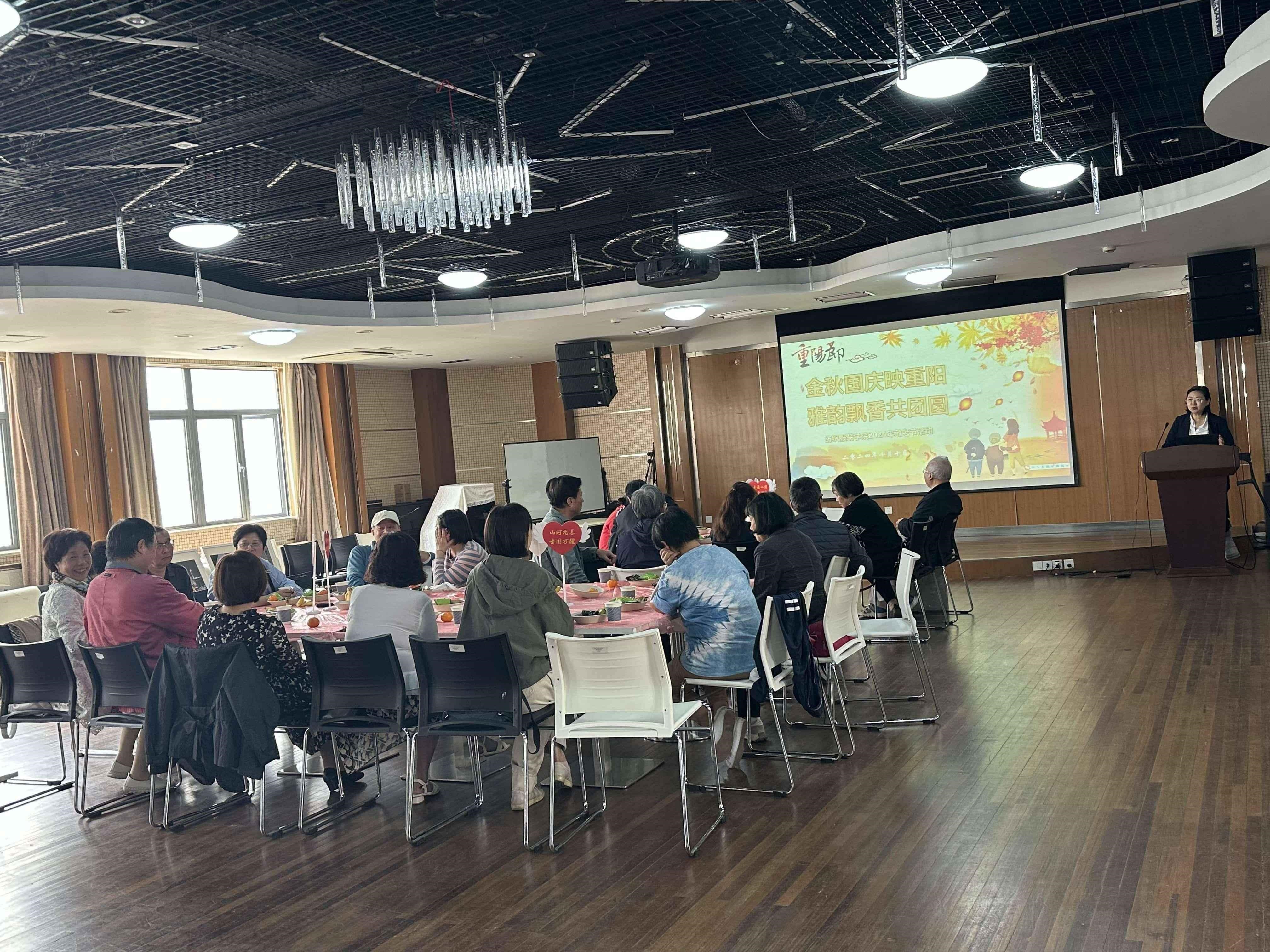 为进一步弘扬尊老、敬老、爱老、助老的传统美德,10月10日,纺织服装学院在长宁校区综合楼多功能厅举行以“金秋国庆映重阳,雅韵飘香共团圆”为主题的敬老节活动,活动由学院工会主席许颖琦主持。