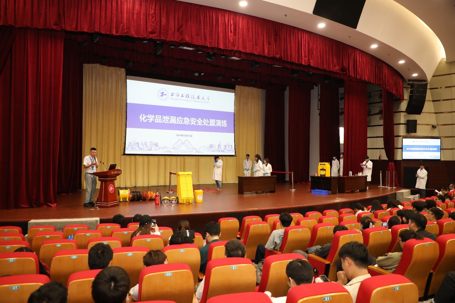 为进一步落实实验室安全风险防范要求,提高实验师生的安全意识、个人防护能力和事故应急处置操作能力,10月12日-14日,资产与实验室管理处组织开展“2024年实验室安全文化月”活动——实验室安全培训及应急演练。相关职能部门负责人,各学院/中心负责人、分管实验室安全负责人、实验中心主任、安全员、师生代表等400余名师生参加培训及演练。