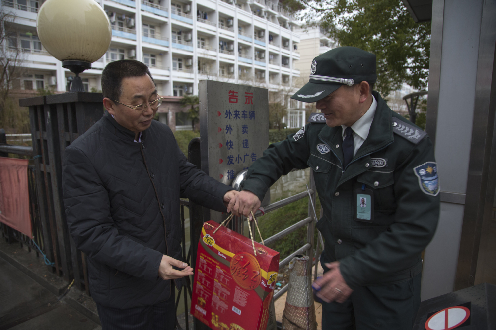 春节,阖家团圆,暖意融融。在工程大,有一批工作人员,春节期间仍坚守工作岗位,他们以高度的社会责任感,默默守护,无私奉献,为保障学校的保卫、后勤等工作而默默奉献着。2月16日,农历狗年正月初一,校党委副书记、副校长史健勇,副校长姚秀平在相关部门负责人的陪同下,分别前往松江校区、长宁校区和普陀校区,看望慰问在春节期间仍然坚守岗位的教职员工,向他们致以节日的问候和诚挚的祝福。