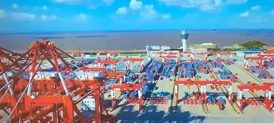 坐落于茫茫东海之上的上海洋山深水港是中国港口建设的旗舰工程,洋山四期位于洋山深水港区最西侧,2014年12月开工建设,2017年12月开港试生产。洋山四期共建设7个集装箱泊位、集装箱码头岸线总长2350米,设计年吞吐量初期为400万标准箱,远期为630万标准箱。通过沈书记的介绍,老师们了解到上海洋山四期自动化码头的突出特点。作为世界上规模最大、设备最先进的自动化码头,所有环节均采用智能化和无人化的操作,上港集团自主研发码头生产管控系统(TOS),与振华重工自主研发的设备控制系统(ECS)配合默契,让国内自动化码头第一次用上了“中国芯”;码头装卸运输设备全部采用电力驱动,实现零排放的绿色码头。