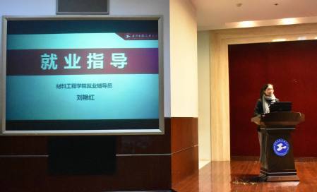 3月9日下午,材料工程学院在图文信息中心第二报告厅召开了2018年考研就业动员大会,本次大会旨在提升2015级学生考研和就业的积极性。学院党委副书记梅元媛、副院长李军和就业辅导员刘艳红参加了本次考研就业动员大会。会议由2015级辅导员沈园花主持。