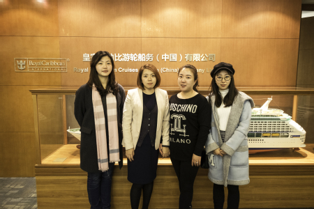 3月7日,管理学院校友寻访团在辅导员金佳雯老师的带领下,前往国际港务大厦看望了我校首届旅游管理(邮轮经济)专业2005级校友、现皇家加勒比游轮船务(中国)有限公司Head of BDS吴艺茹和2013级校友、现皇家加勒比游轮船务(中国)有限公司业务发展员王光宇。