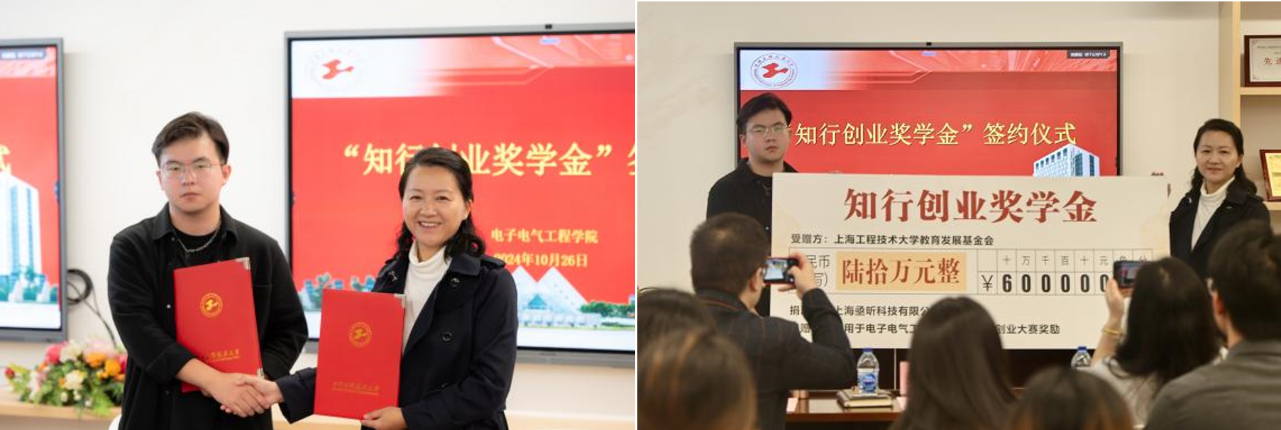 10月26日上午,电子电气工程学院在现代交通工程中心7-1002教工之家举行“知行创业奖学金”签约暨校友驿站揭牌仪式。电子电气工程学院党委书记范君晖、副书记赵梦影出席活动,辅导员任泽宇老师主持。