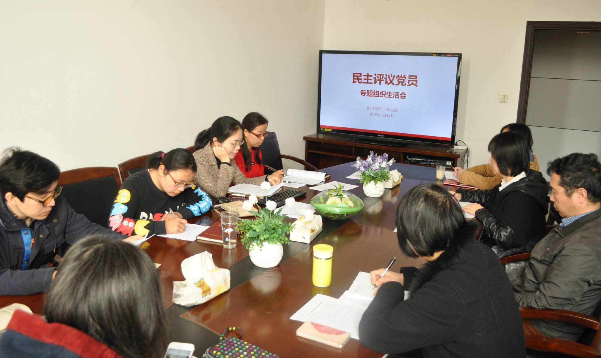 近期,图书馆第一、第二党支部分别举行了“不忘初心、牢记使命,贯彻落实十九大精神”专题组织生活会暨民主评议党员会议。全体党员参加了会议,并邀请群众代表列席参加。