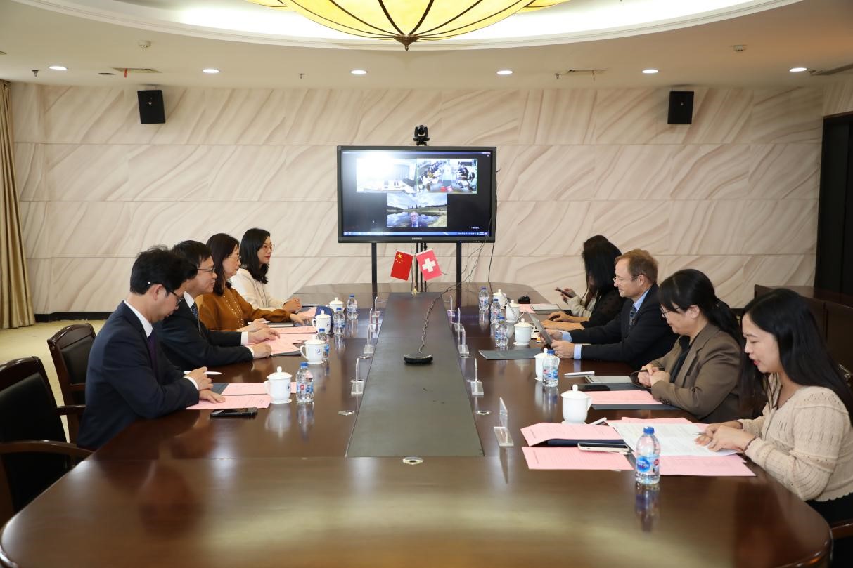 俞涛校长与瑞方Jürg Kessler校长通过视频连线参加会议。俞涛校长充分肯定了中瑞合作办学项目十年来的办学成果,他表示,一是“成功”,两校携手走过了非常成功的十年合作;二是“感谢”,感谢Jürg Kessler校长及瑞方项目团队做出的巨大贡献;三是“期待”,期待未来在瑞方新校长的带领下,两校合作由职升本,由点及面,再结硕果。