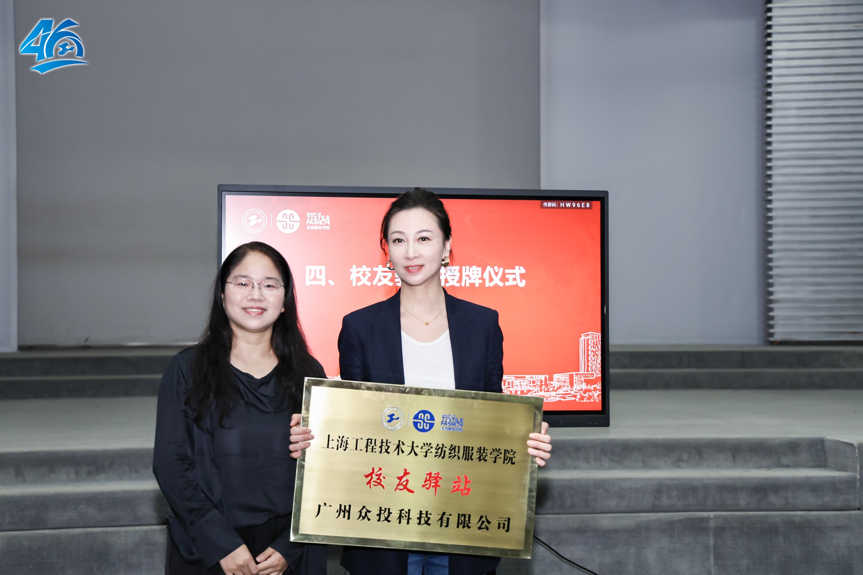 副院长李春晓从人才培养、办学模式、学院发展等角度详细介绍了现代产业学院的建设情况,并与广州众投科技有限公司创始人庄雅晴校友联合颁发了第二家校友驿站。