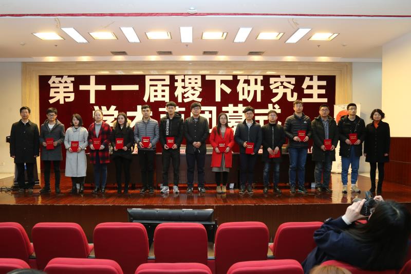 闭幕式以VCR短片的方式,回顾了本届研究生学术节历时四个月的精彩瞬间,从紧张筹备到正式开幕,再到有条不紊地举办“英语达人大赛”、“论道启真辩论赛”、“稷下论坛征文比赛”、“学术之星”等学术活动,激起了在场嘉宾和同学们的热烈共鸣。闭幕式上,校研究生会主席张晶对本届学术节的活动进行了总结汇报,东华大学研究生会杜明远同学代表兄弟学校研究生会致辞,对我校学术节圆满落幕表示祝贺。服装学院研究生龚柏惠代表获奖同学进行了交流发言。与会领导为获奖集体和个人颁发了证书、奖杯,并与大家合影留念。