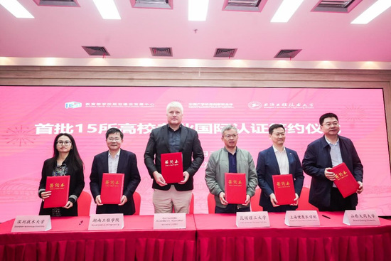 首批中国高校专业认证工作自2024年3月15日启动以来,在中国应用型高校国际合作联盟(CUIC)和德国ASIIN认证协会的努力下,安徽大学、上海工程技术大学等全国15所高校的30个专业参加2024年度国际专业认证申请,会上举行了首批15所高校国际专业认证签约仪式。