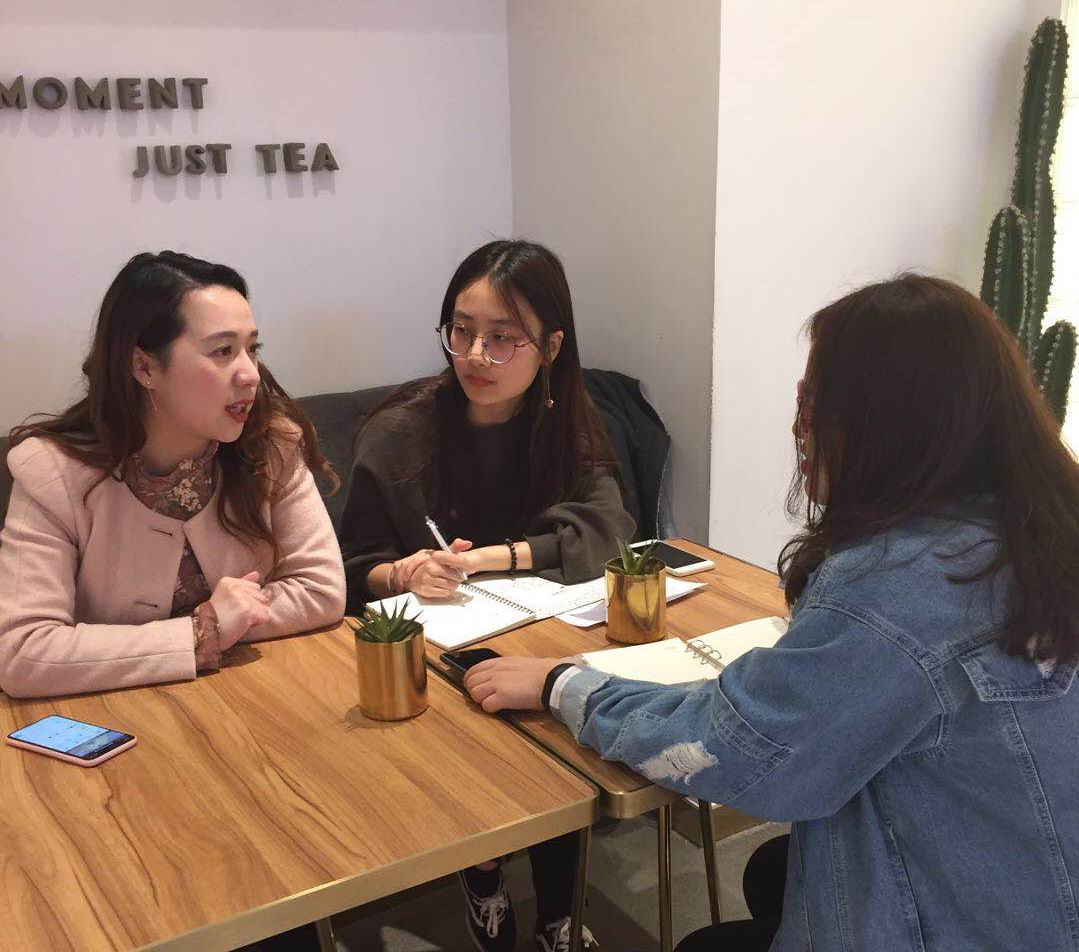 3月23日下午,服装学院校庆40周年学生党员工作组成员来到了坐落于上海环贸iapm商城的万达传媒有限公司,走访了服装学院2015届校友王玥。