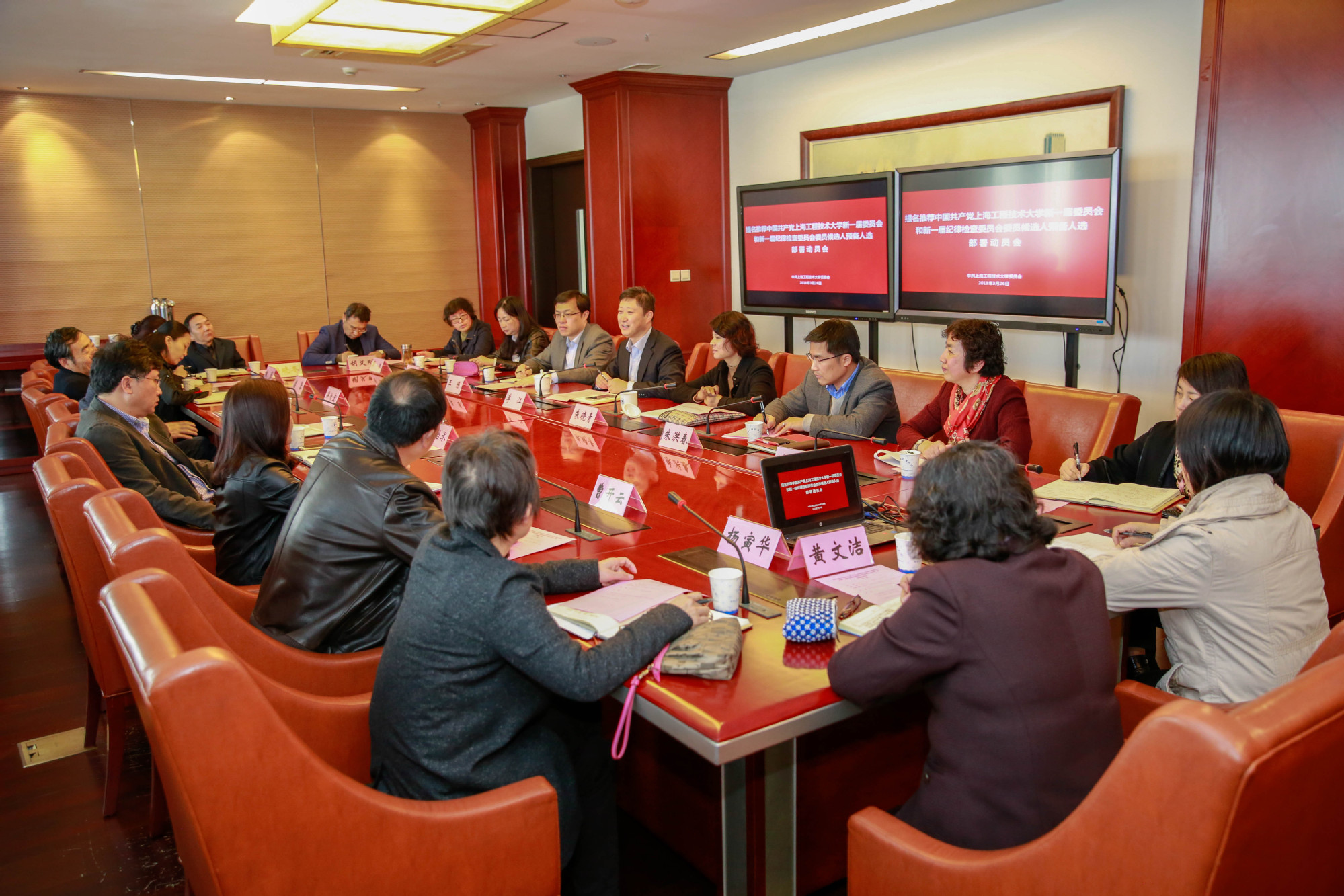 326日上午,学校在行政楼406召开提名推荐中国共产党上海工程技术大学新一届委员会和新一届纪律检查委员会委员候选人预备人选部署动员会。校党委书记李江,校党委副书记、副校长朱晓青出席会议,各基层党委、党总支、书记、副书记、组织员参加会议。会议由校党委副书记、副校长朱晓青主持。