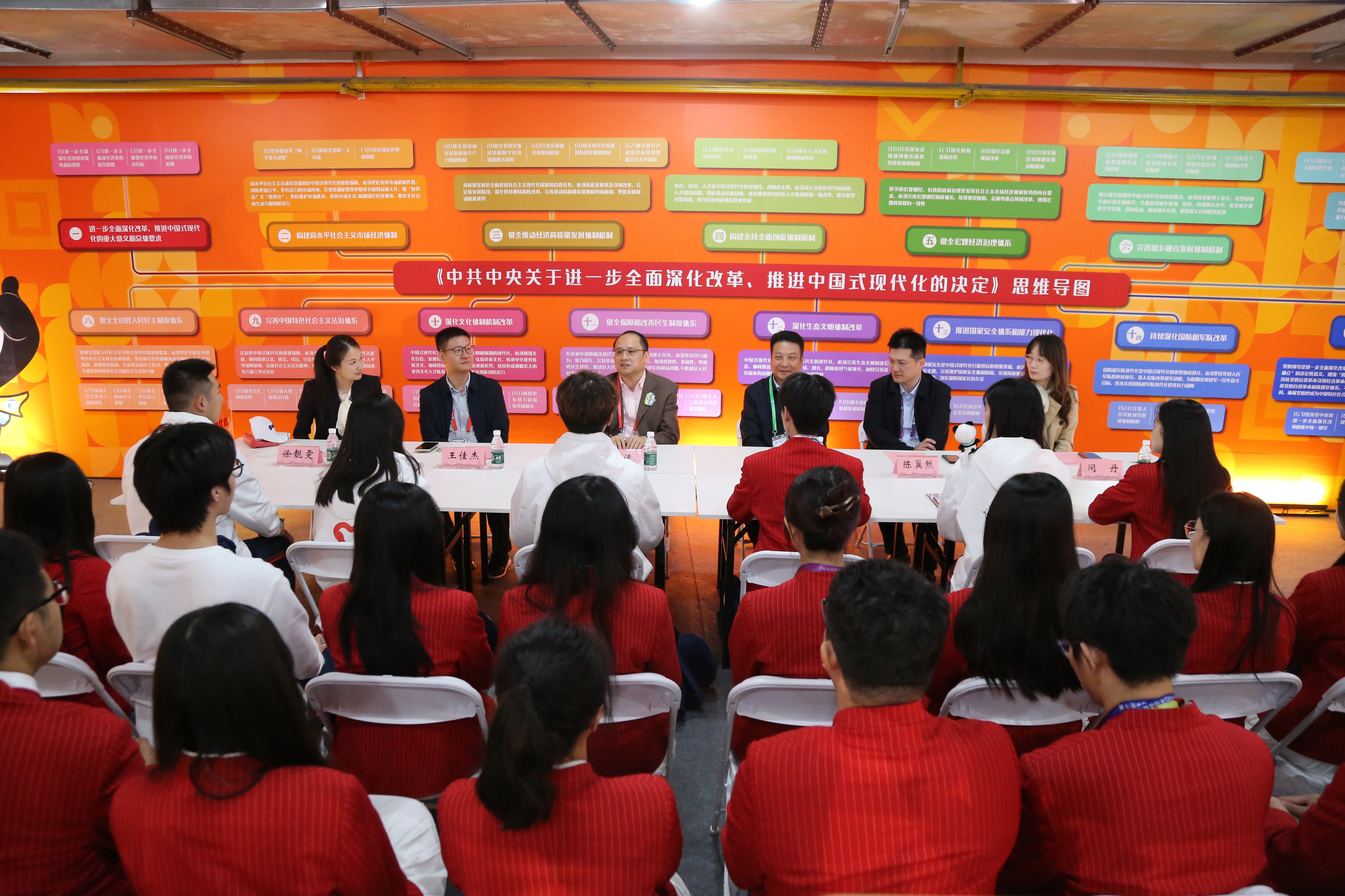 俞涛校长在志愿者之家学习园地,为“小叶子”们讲授“青春筑梦:青年在强国复兴中的责任与担当”思政课。俞涛校长提到,作为进博志愿者,“小叶子”们应深刻认识到参与进博会的重要意义,切身感悟到进博会对上海及中国的重要意义。作为国家对外开放的重要平台,进博会不仅是展示中国开放姿态的窗口,更是推动全球经济合作的桥梁。俞涛校长鼓励“小叶子”们,要以参与本届进博会志愿服务的经历为契机,深度参与人民城市建设、强国复兴建设,坚持“敢想”“敢做”“敢为”,在奉献中学习,在学习中成长,在成长中作出新的贡献。