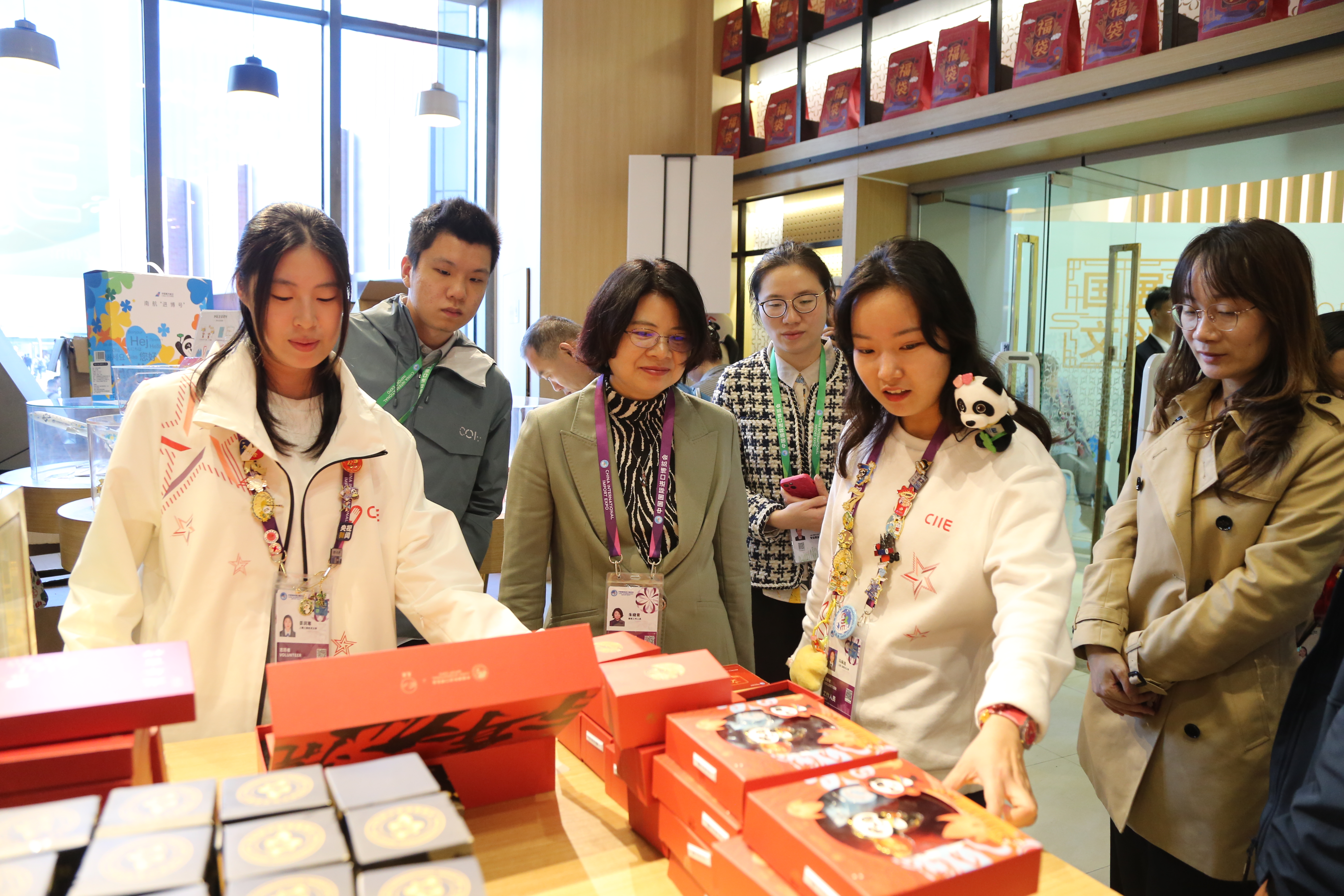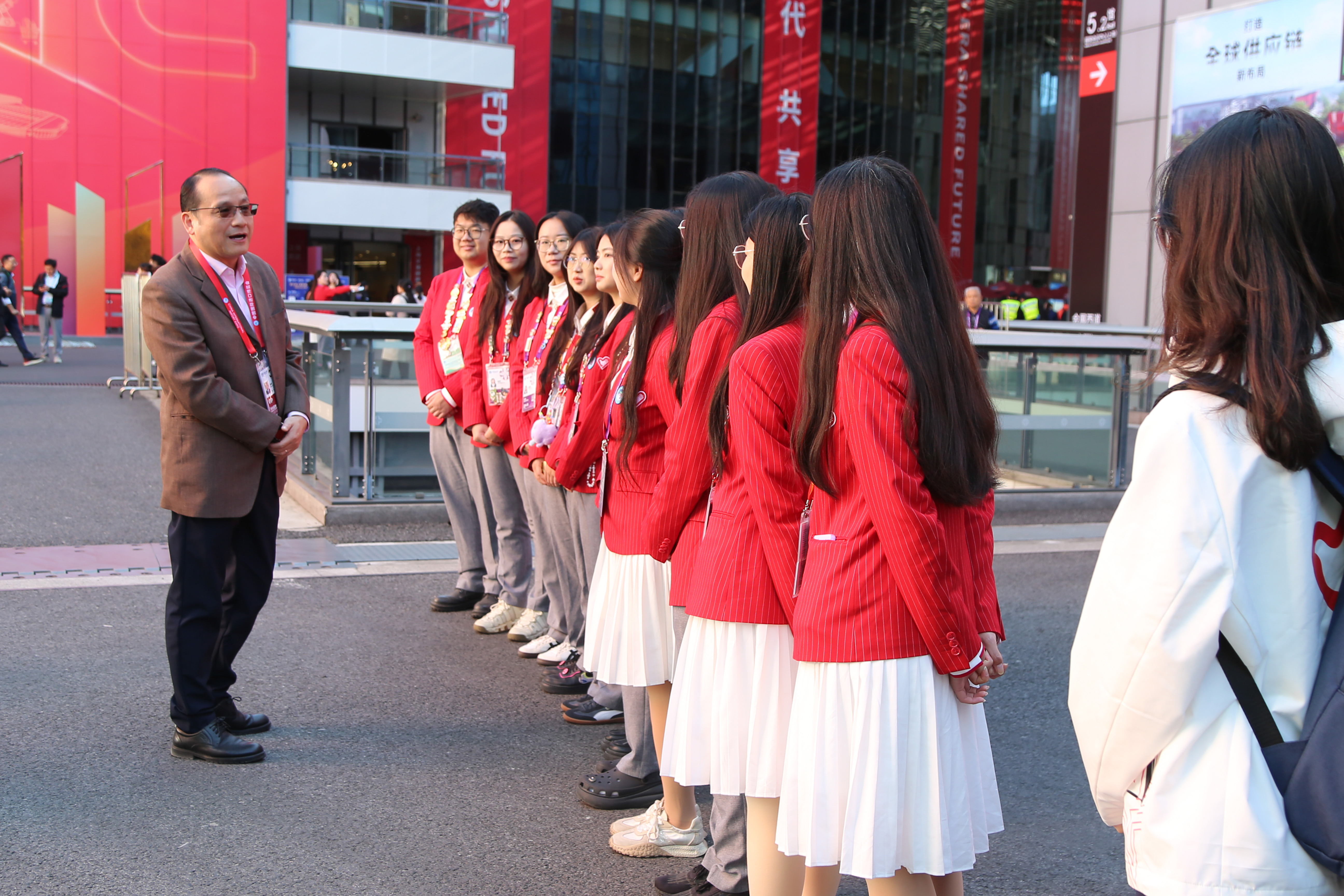 11月7日、8日,校党委书记李江,党委副书记、校长俞涛,党委副书记朱晓青,党委副书记、副校长徐阳,分批来到国家会展中心慰问上工程“小叶子”。