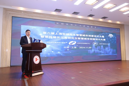 11月9日,由上海市学位委员会办公室指导,上海市学生事务中心主办,我校承办的“第六届上海市研究生智慧城市创意设计大赛暨第四届长三角研究生智慧城市创意设计大赛”决赛在我校图文信息中心举行。大赛自今年6月1日启动以来,吸引了来自18所高校的108支参赛队伍总计366名研究生参赛,最终48支队伍脱颖而出。副校长王岩松,上海市学生事务中心副主任王涛,上海市教委高教处副处长刘军出席大赛开幕式,电子电气工程学院院长李媛媛主持活动。