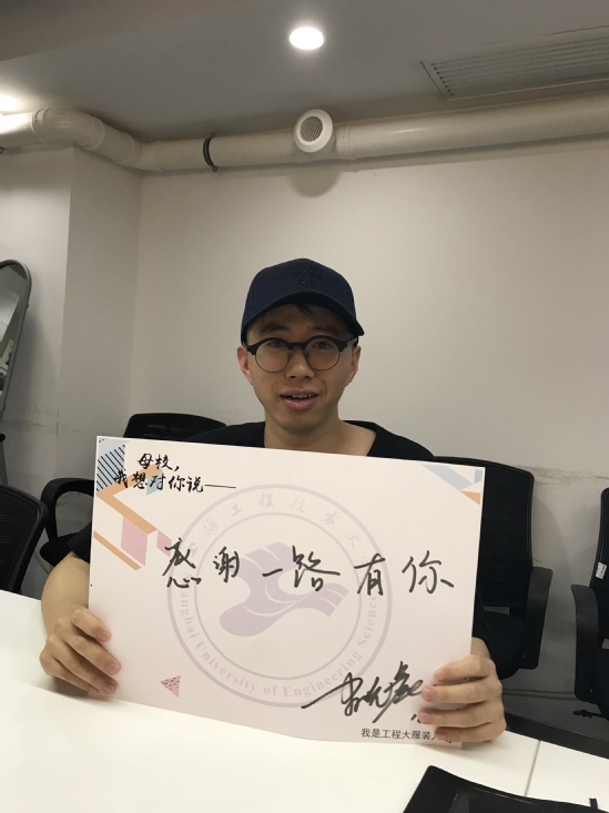 “感谢一路有你”——这是李晓晨校友写下的对母校上海工程技术大学的祝福和感谢。虽然只有寥寥数字,但其中的深意与想念令人为之动容。感谢母校的栽培,也感谢自己努力过的青春韶华。沈智莉老师对李晓晨校友的祝福表示由衷的感谢,代表学校赠送了学校准备的纪念礼品,并邀请他常回母校看看。