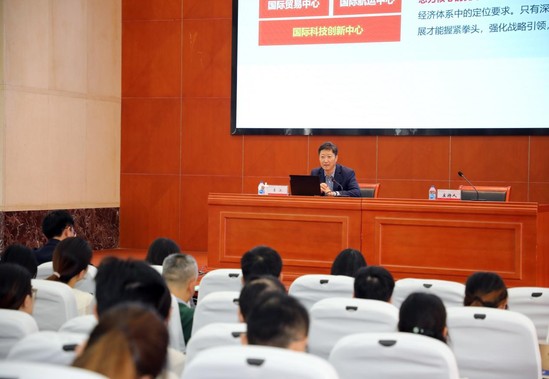 李江书记围绕“国家上海发展战略”“全国、上海市高校分类和学校基本情况”“教育事业改革创新精神”三个方面作专题报告。李江书记介绍了上海深化“五个中心”、强化“四大功能”情况,他指出科技创新中心建设是上海未来城市的发展核心,是上海城市发展的“灵魂”,是上海城市发展的“牛鼻子”,对原有的“四个中心”和整个城市发展具有引领作用;学校主动对接上海“3+6”现代产业体系,优化学科专业结构与布局。李江书记详细阐述了我校作为多科性应用技术型大学的办学定位、办学历史、发展战略,第四次党代会将确立的新“三步走”奋斗目标、“四大战略”“五场攻坚”,学校将努力建设国内顶尖、国际知名的现代化工程应用型特色大学。