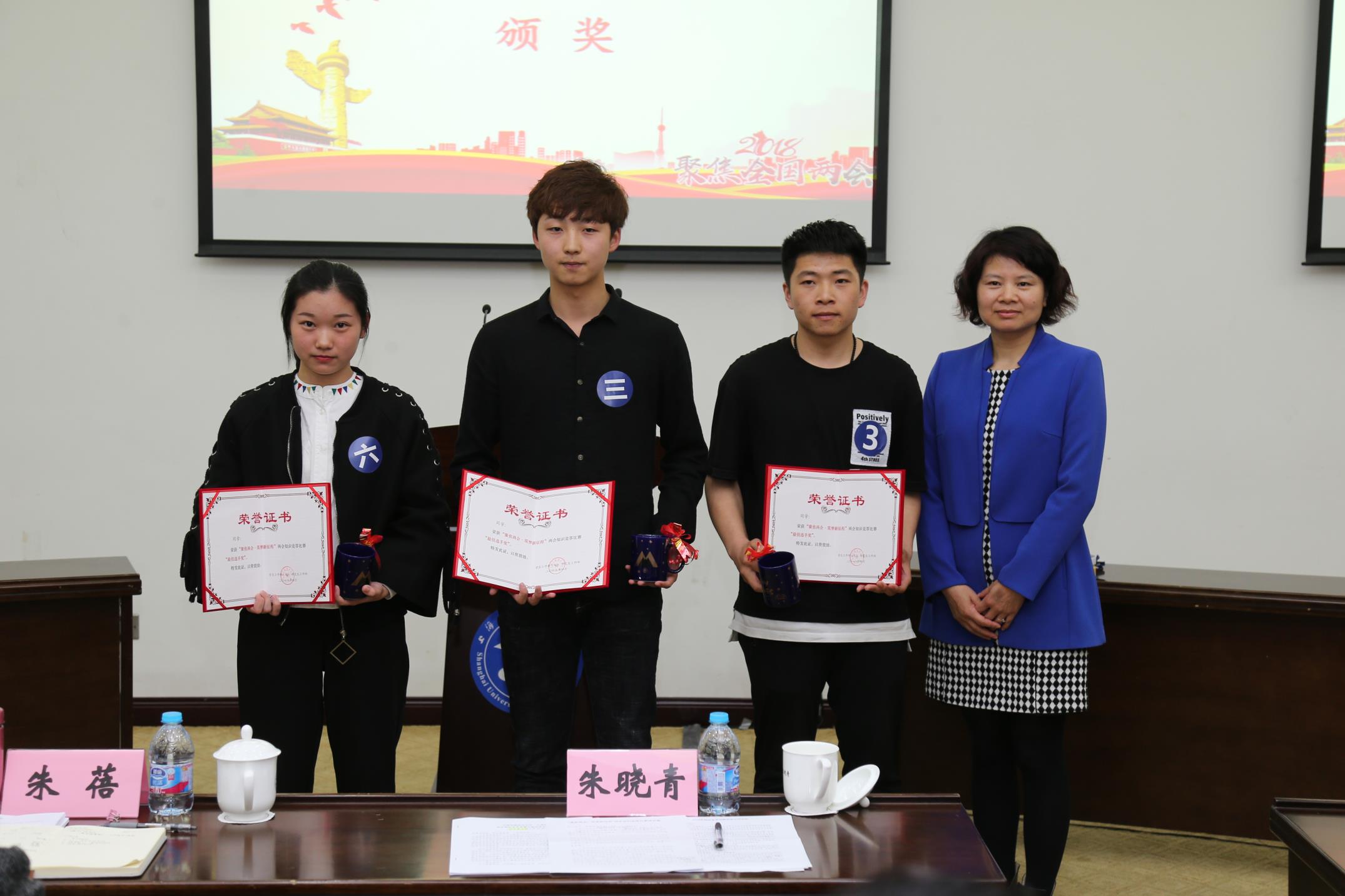 校党委副书记、副校长朱晓青对本次两会知识竞答活动的成功举办给予了充分肯定,她表示,从竞答比赛中看到了同学们广博的知识储备,也感受到了大家对时事政治的热情和对国家发展的关注,展现出新时代我校大学生的精神风貌,值得大家点赞。校党委副书记、副校长朱晓青借用习近平主席在全国人大一次会议上的讲话与同学们分享了三个关键词,一是“信心”:“人民有信心,国家才有未来,国家才有力量。”希望同学们对未来充满信心,树立道路自信、理论自信、制度自信和文化自信,以信心来激励前行,以信心来激扬青春梦,实现中国梦;二是“奋斗”:“世界上没有坐享其成的好事,要幸福就要奋斗。”只要有梦想,有机会,有奋斗,一切美好的东西都能够创造出来;三是“坚持”:“山再高,往上攀,总能登顶;路再长,走下去,定能到达。”她以霍金的故事激励大家,不忘初心,不懈奋斗,终有一天,同学们会为因坚持而成功的自己感到骄傲。