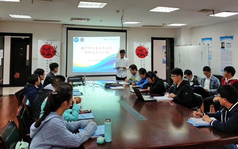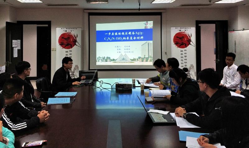 论坛开始先由史纪峰同学汇报研究成果“一步原位焙烧法制备Ag/g-C3N4/N-TiO2纳米复合材料”。纳米材料是一种新型高性能的材料,已在工业生产中得到了广泛的应用,因而纳米材料的制备方法一直是人们关注的热点,史纪峰就这一问题展开了他的论述。接着由李维杨同学汇报“量子点型SnOx @Zr-MOFs (UiO-66)复合电极材料的应用研究”,目前能源的需求急剧膨胀、环境污染的日趋严重,使得新型清洁能源的开发和利用越来越受重视,因此研究与开发新型电极材料势在必行。最后由缪军同学汇报“不同润滑介质作用下GCr15/10钢摩擦与润滑特性分析”。摩擦磨损是设备破坏失效的三种主要形式之一,我国每年因机械磨损而损耗的材料高达数千亿元,缪同学关于润滑特性的分析,在减小材料磨损、提高机械效率方面具有深刻的意义。