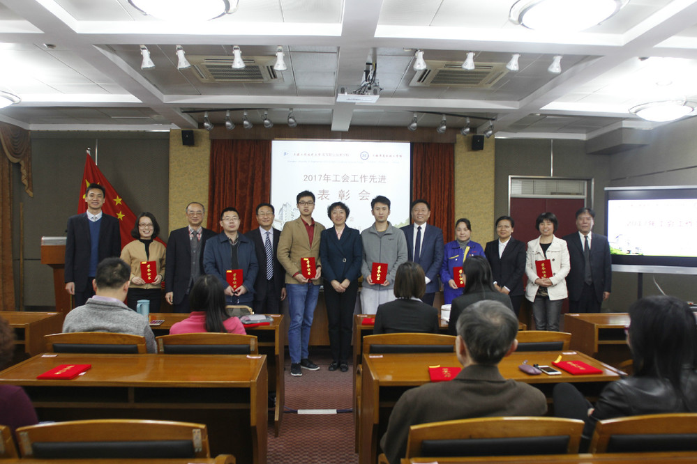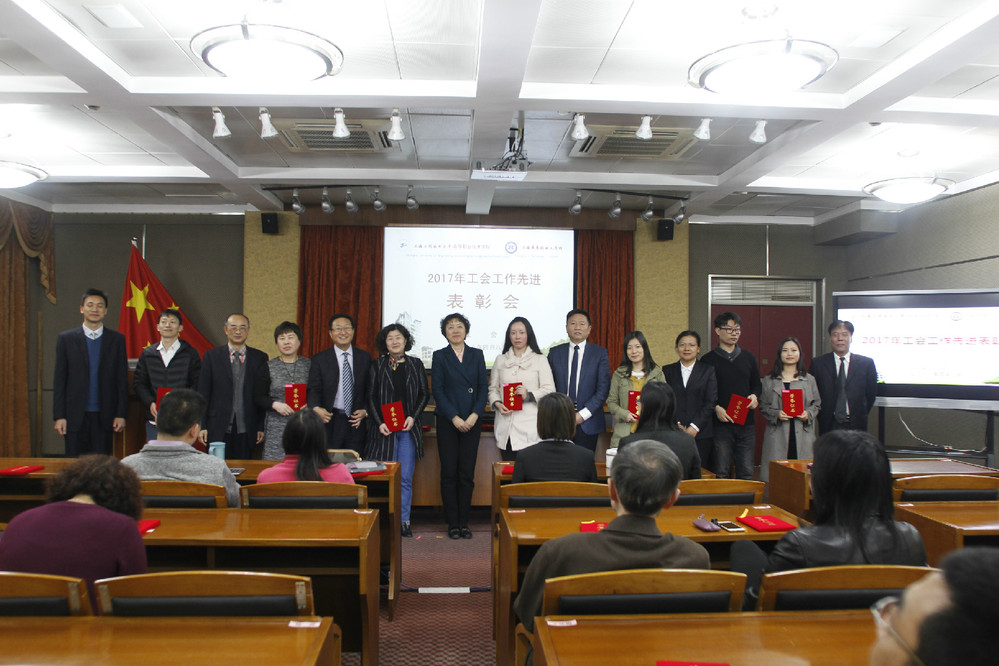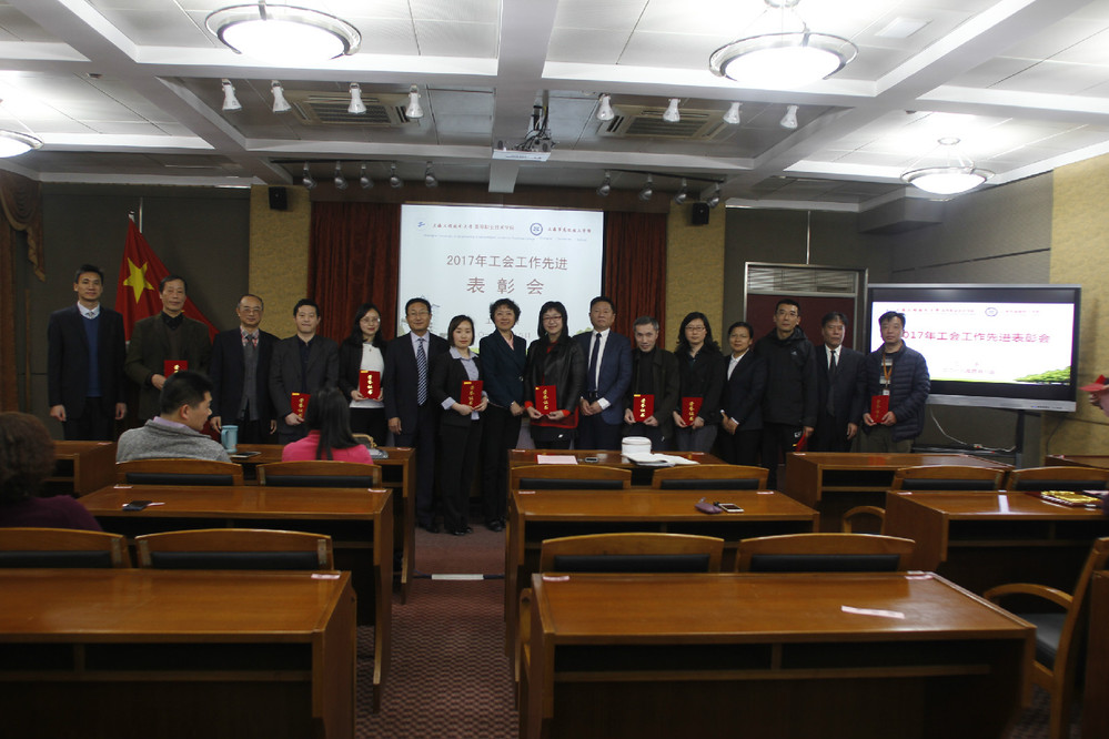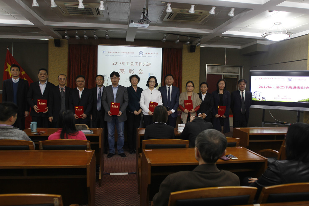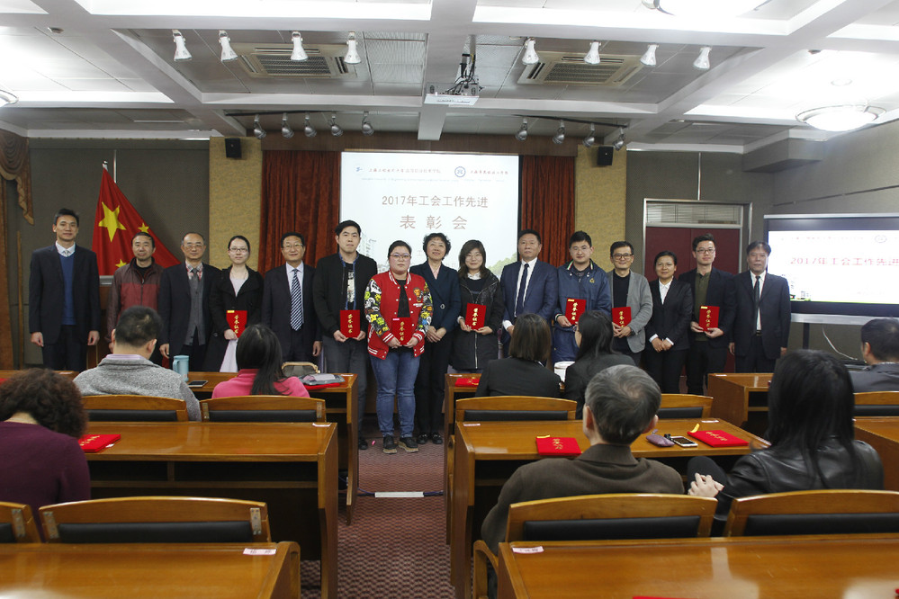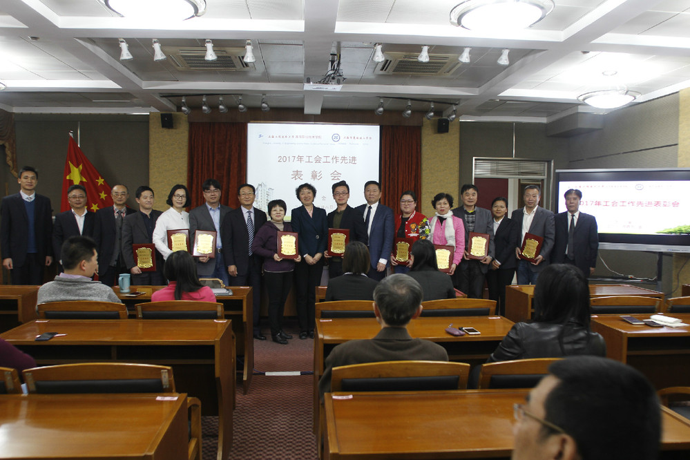 会上首先由党委副书记、工会主席田盈耕宣读了学院、校工会关于对获得上海工程技术大学工会的1位优秀工会干部、5位工会积极分子,10个学院、校工会先进集体、9位优秀工会干部、50位工会积极分子的表彰决定。学院领导班子分别对所有获得先进的集体和个人颁发了获奖证书并合影留念。