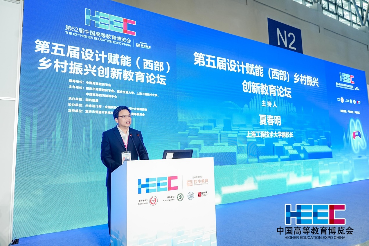 11月16日,由重庆市高等教育学会、重庆交通大学、上海工程技术大学及中国高等教育培训中心联合主办的第五届设计赋能(西部)乡村振兴创新教育论坛在重庆市召开。此次论坛作为第62届中国高等教育博览会的重要组成部分,旨在通过设计教育的力量,为西部地区的乡村振兴注入新的活力和创新思路。上海工程技术大学副校长夏春明,重庆市高等教育学会副会长,重庆工商大学原校长孙芳城,嘉兴大学党委书记沈希,安徽建筑大学副校长李早,重庆交通大学副校长张铭、未来设计师大赛组委会秘书长郭清胜等出席活动,我校教务处处长饶品华、国际创意设计学院院长顾艺等相关负责人参加活动。