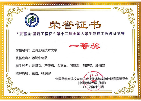 本次全国大学生制药工程设计竞赛的题目为“大容量注射剂生产车间的工艺设计”。化学化工学院王晗老师指导的药笼中物队充分发挥自身优势,凭借在制药工程设计方面的专业知识和创新思维,完成了以数字化、智能化、绿色化为特色的工艺设计,最终取得优异成绩,斩获全国总决赛一等奖和单项奖——最佳答辩奖。此外,由刘晓会、赵琳静老师指导的智药队,陈玲艳、朱敏老师指导的我和评委站一队也分别取得全国二等奖和全国三等奖的优异成绩。此次比赛有效地培养了学生的创新思维能力、工程设计与工程实践能力,展现了学生的团队协作精神,彰显了我校在制药工程实践教育方面的显著成效。