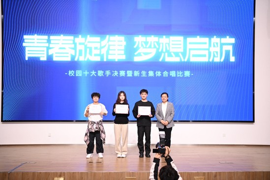 选手们凭借卓越的才华和对音乐的热爱,为观众呈现了一场视听盛宴。同学们的掌声与欢呼声此起彼伏,高潮迭起,整个活动洋溢着激情与活力。陈力华教授倾情献唱了《早安,程园》和《共筑中国梦》,为现场带来了无限温馨与活力。经过一系列精彩绝伦的比拼,陈映徵最终摘得桂冠,黄逸欣和李灏薰荣获亚军,安炳璇、戚爱玲和李佳恩共同赢得了季军。陈力华教授和杨舒雯教授为获奖者颁奖。