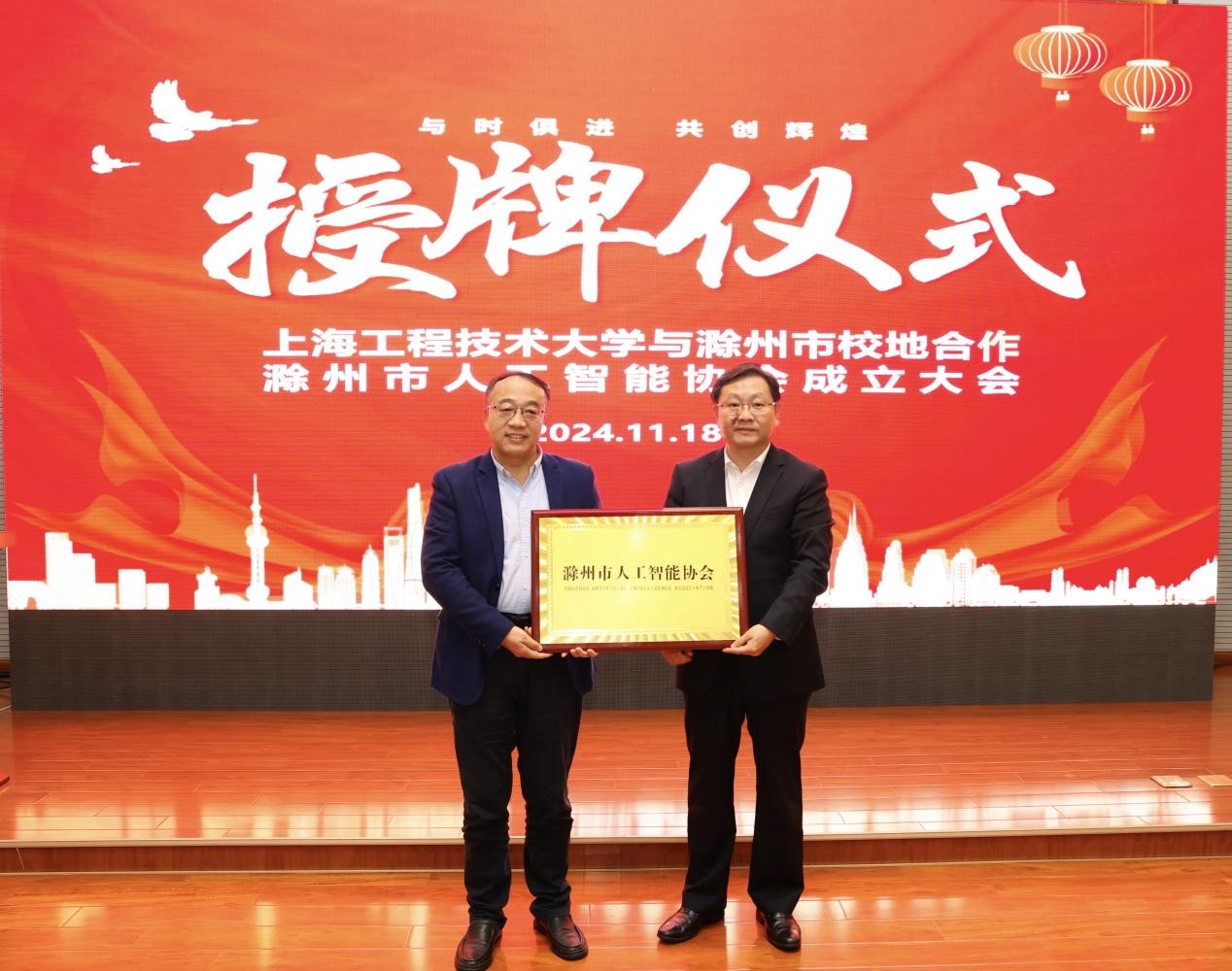 近日,上海工程技术大学与滁州市校地合作会议暨滁州市人工智能协会成立大会在滁州高教科创城举行。中国工程院院士沈昌祥、中国工程院院士蒋昌俊应邀出席并作主旨演讲。滁州市委书记吴劲出席并为滁州市人工智能协会授牌。滁州市委副书记、市长胡春华,上海工程技术大学党委副书记、校长俞涛分别致辞。
