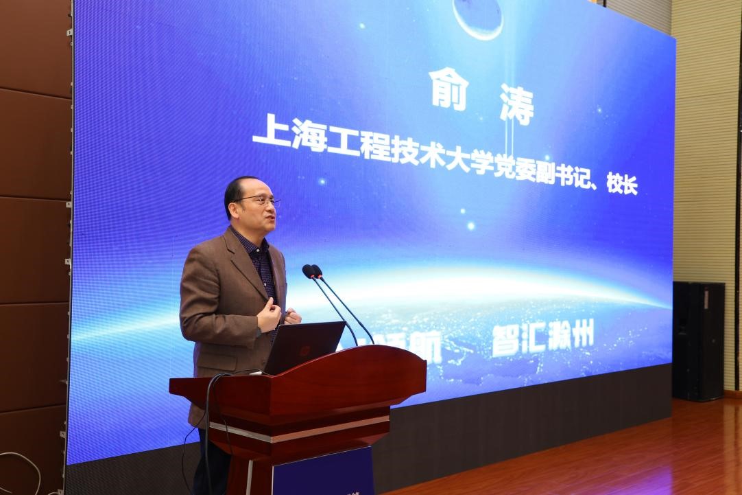 俞涛校长在致辞中向滁州市委、市政府长期以来对上海工程技术大学与滁州校地合作的关心支持表示感谢。他表示,上海工程技术大学将带着感情、带着责任、带着使命,发挥应用型高校办学优势,全面加强学科专业和地方产业的联系对接,把学术研究成果转化为促进滁州发展的力量,争做支持滁州相关产业发展的“台柱子”。