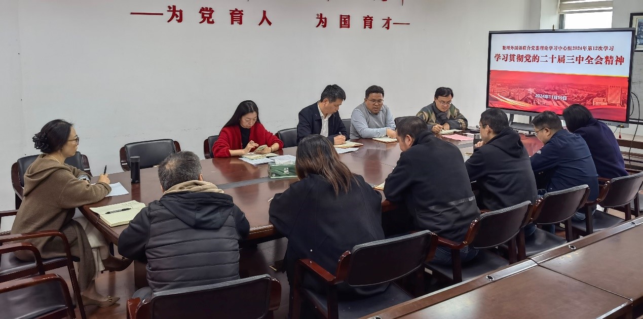 11月19日,数理外国语联合党委理论学习中心组在行政楼1308室开展2024年第12次学习,深入学习贯彻党的二十届三中全会精神。学院党政班子、党政办主任参加学习,体育教学部宣传员张京雪列席旁听。