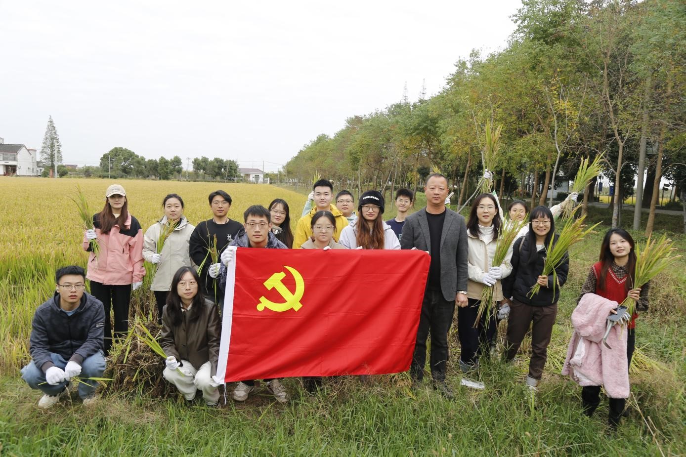 为积极响应《关于全面加强新时代大中小劳动教育的意见》,让学生党员切身体验并弘扬劳动精神,在红色文化和农耕文化的熏陶下体验劳动之乐,不断实验、深入思考、锤炼品质、坚定共产主义理想信念,11月19日上午,航空运输学院研究生第二党支部、学生创新团队党支部、学生第一党支部把主题党日开到田间地头,在教师党支部书记的带领下,学生党员们在韩坞村开展收割水稻劳动教育活动,让党旗在秋收一线高高飘扬。