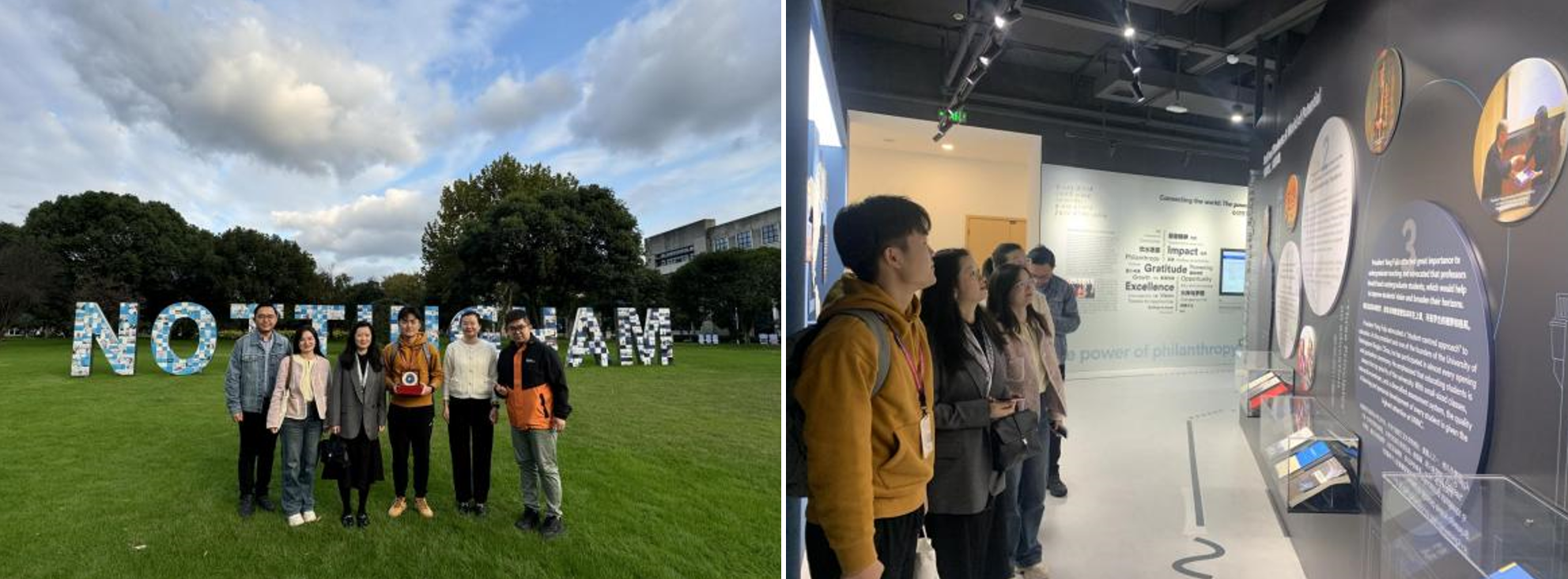 在宁波诺丁汉大学,学院一行走访了2024届校友张伽瑜,张伽瑜热情地向老师们介绍了在国际化教育背景下自身的成长与收获。他强调,母校注重实践与创新的教学理念为他们在宁波诺丁汉大学的进一步深造奠定了坚实基础,使其能够快速适应国际化的学术要求和多元文化的交流环境。学院一行和校友一起参观了校史馆。