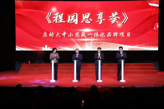 金勤明、刘真、朱晓青、徐阳共同上台启动大中小思政一体化品牌项目《程园思想荟》,学校将在市教委、团市委的指导支持下,进一步探索大中小一体化思政教育模式,打造更多思政“金课”,画好铸魂育人“同心圆”。