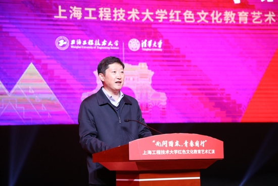 11月22日,“无问西东,青春前行”上海工程技术大学红色文化教育艺术汇演于松江校区志宏堂举行。市十届政协主席、市工业经济联合会原会长、清华大学上海校友会名誉会长蒋以任,市工业经济联合会执行副会长史文军,市教卫工作党委二级巡视员、老干部处处长、市教育系统关工委秘书长金勤明,团上海市委兼职副书记刘真,校党委书记李江,党委副书记朱晓青,党委副书记、纪委书记孟星,党委副书记、副校长徐阳,副校长夏春明、许开宇,校领导史健勇,校关工委常务副主任田信灿,校老教授协会会长夏斯云,市政协办公厅、上海市工经联、清华大学上海校友会、上工程关工委老教授协会代表、上工程师生代表及泗泾附校少先队员代表共计500余人出席现场活动,累计超5000余人次通过“工程大青年”微信公众号直播在线观看,近40000人次观看图片直播,上工程青年共赴青春“大思政课”。
