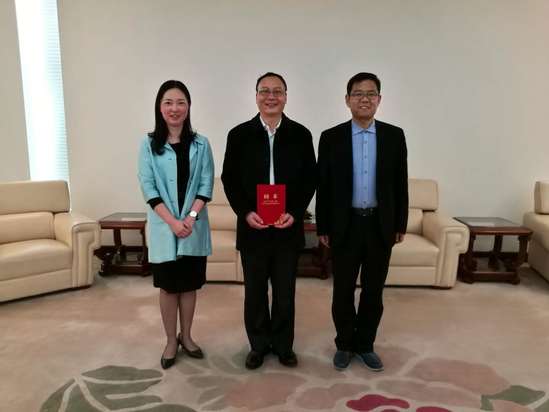 4月13日下午,北京外国语大学高翻学院常务副院长、翻译家李长栓教授接受我校外国语学院邀请担任兼职教授,为外国语学院的发展献智献力,推动我校翻译专业更好的发展。数理学院和外国语学院联合党总支书记王勤副教授和外国语学院院长王刚教授为李教授颁发了兼职教授证书。