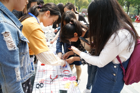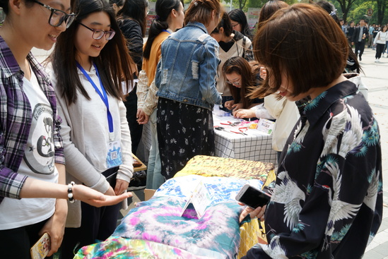 本次时尚节邀请了校园十大歌手之一顾少麟同学,以及轮滑社成员作为暖场助阵,吸引了不少学生关注。之后,服装学院党委书记袁蓉为时尚节开幕式致辞,她为服装学院的学生能有如此优秀的作品感到欣慰骄傲,也期待同学们能在时尚节中施展自己的才华、展现自己的风采,并预祝学院时尚节取得圆满成功。活动现场有服装学院学生的设计作品,包括扎染展示、明信片展示以及首饰展示和面料再造展示,款式新颖奇特,极富设计感,志愿者们进行了详细讲解,引起了同学们浓厚的兴趣;现场还有饰品制作,同学们纷纷亲自制作,动手体验,获得了一致好评。