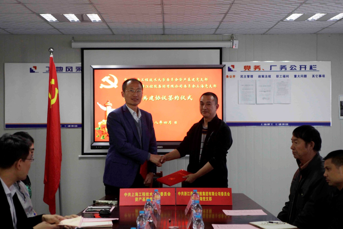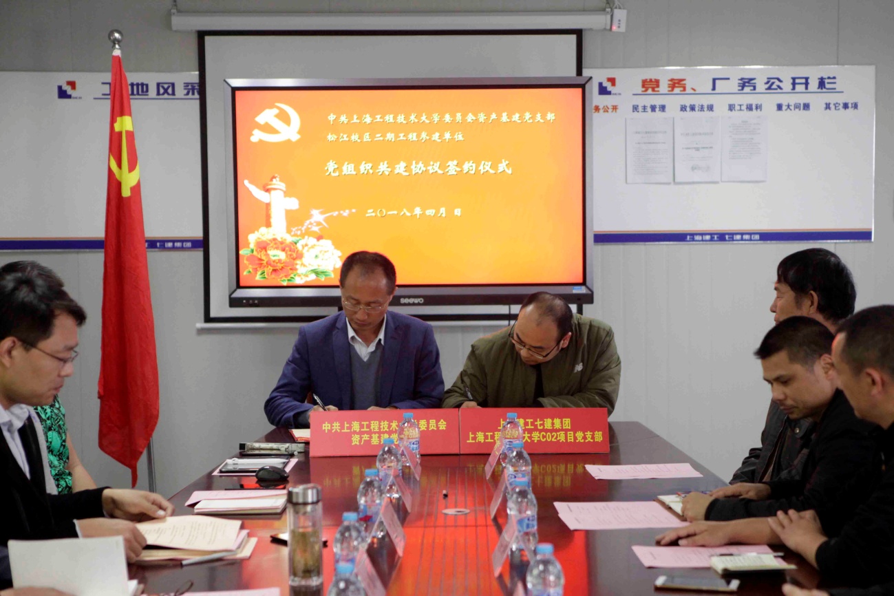 4月17日下午,资产基建党支部与上海建工七建集团上海工程技术大学C02项目党支部,中共浙江舜江控股集团有限公司委员会上海党支部在我校松江校区二期工程C02标段会议室举行党组织共建签约仪式。资产基建党支部书记、资产处处长宋勤健,基建处处长刘国斌出席签约仪式,资产基建党支部党员代表,上海建工七建集团党员代表,浙江舜江建设集团有限公司党员代表,上海教育建设管理咨询有限公司党员代表参加签约仪式。签约仪式由基建处副处长范祚迅主持。