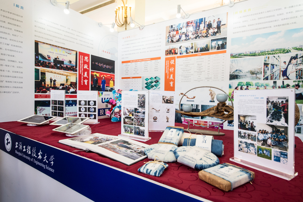 展区现场,“海宝”形象衍生品设计、植物染衍生品设计、根雕创意设计、服饰创意设计让观众对于设计以及设计背后文化与创意的交融有了深入的了解,大明宫词以及青与白运用多媒体手段将现代科技与中华传统文化巧妙结合吸引了大批观众驻足现场。参展前,由校长办公室牵头,校团委向各学院和职能部门征集体现学校、学院办学特色和办学水平的优秀展品,并组织校长办公室、宣传部、教务处、学生工作部(处)、团委等职能部门和艺术设计学院、航空运输学院、服装学院、中韩多媒体学院、中法艾菲时装设计师学院、体育教学部对展品进行遴选、设计,最终将学校近五年来在美育工作中的喜人成果展示在公众面前,让社会各界对我校美育发展现状以及未来发展的愿景方向有更加深入、更加全面的了解。