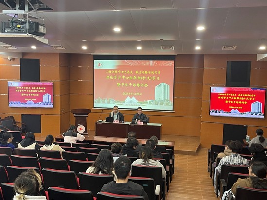 11月28日下午,工程训练中心党总支与航空运输学院党委在航飞楼报告厅召开理论学习中心组(扩大)学习暨中层干部培训会。会议邀请中国商飞(上海飞机设计研究院)专家曹喜锋研究员作了题为“深入贯彻落实党的二十届三中全会精神 加快推进我国民用飞机产业发展”的专题报告。工训中心党总支书记王成涛主持会议,工训中心党总支、航空运输学院党委班子成员、理论学习中心组成员及教职工党员、学生代表参加学习。
