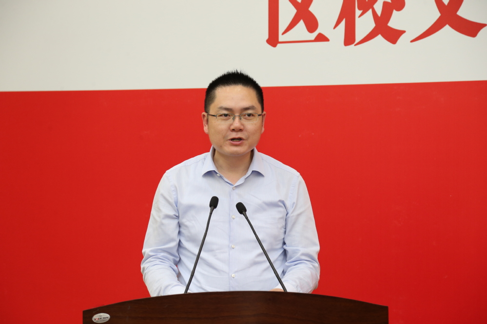 松江区委常委、宣传部长赵勇在讲话中谈到,文化是一座城市的灵魂和根基,也是一所大学的核心竞争力之所在,更是推动区校共建、校地合作的桥梁和纽带。今天我们开展了区校文创项目对接交流,接下来还要共同为路平工作室揭牌,开通“光芒之声”高校思政微信公众号,这处处体现了文化的自信和创新的力量,同时也是区、校、企三方合作,共同推进高校思想政治工作的有益探索。赵部长希望路平工作室以及“光芒之声”公众号能更好地发挥专业优势,创造性地开展大学生思政工作,使高校思政课变身成为大学生“坚定信仰、修身立志”的主渠道,成为“开门办思政、公益办思政”的社会大课堂。今后,他期待借助上海工程技术大学的人才和科技优势,在影视创作、网络动漫、人才培养等方面加强合作交流,推动文化与科技相融合、创新与创业相融合,并衷心祝愿学校继续与改革开放、区域发展同向同行,再创新的辉煌。