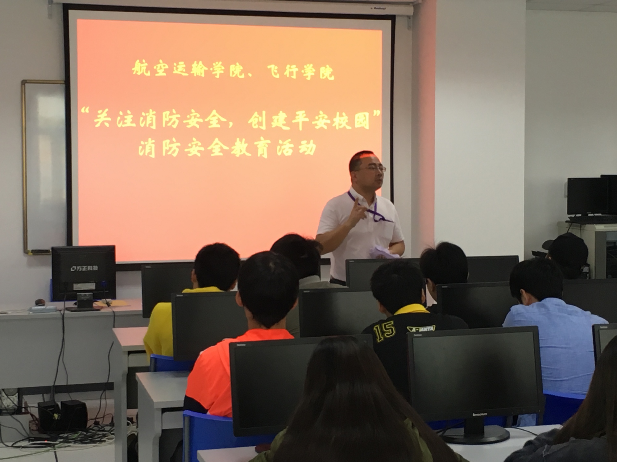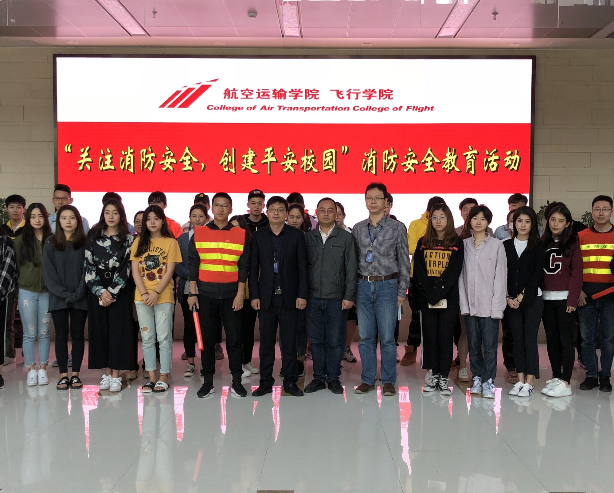 在“5.12”防灾减灾日来临之际,为进一步提高学院的防灾减灾应急组织指挥能力,普及消防安全知识和技能,增强学生自救和互救能力,培养学生实时关注消防安全、防灾减灾意识,共同创建平安和谐的校园环境,航空运输学院/飞行学院结合实际情况于5月10日上午在航飞楼举行了“关注消防安全,创建平安校园”消防安全教育活动。学院党总支副书记戴振华,校保卫处消防科科长吴挺,航空运输学院部分师生共同参与本次活动。