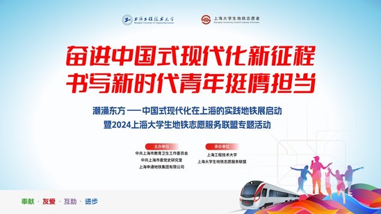 12月3日下午,由上海市教卫工作党委、中共上海市委党史研究室、上海申通地铁集团有限公司主办,上海工程技术大学、上海大学生地铁志愿服务联盟承办的“奋进中国式现代化新征程 书写新时代青年挺膺担当”专题活动启动仪式在上海地铁人民广场站音乐角举行。市教卫工作党委副书记、副主任顾红亮,中共上海市委党史研究室副主任唐洪涛,校党委副书记、副校长徐阳,市教卫工作党委二级巡视员、宣传处处长赵扬,上海申通地铁集团文化艺术总监、党建工作部部长吴昕毅,市教卫工作党委宣传处副处长张晓飞,中共上海市委党史研究室科研(宣教)处副处长马婉,校党委宣传部部长刘志欣,同济大学、华东师范大学、华东政法大学等17家上海大学生地铁服务联盟单位师生代表现场参会。