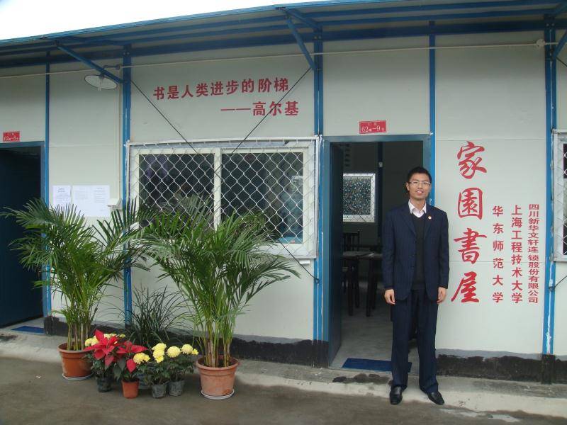 “我们这个想法得到了上海团市委和都江堰团市委的支持,幸福家园临时安置点管委会提供我们一个100平方米左右的板房。我们在上海工程技术大学和华东师范大学发起了图书捐赠的倡议,仅我所在的上海工程技术大学就捐赠了许多图书与书架,当地的出版社也捐赠了许多,图书的规模一下子就达到了几千册。”崔开昌乐了,因为临时安置点中一方小小的板房,变成“家园书屋”,成为了许许多多孩子们的精神家园。“这些整齐有致的板房,这些迎风飘扬的旗帜,这方小小的书屋,加上大家满腔的青春热血,众志成城,让涅槃重生中的灾区看到了人生的光亮、未来的希望。”