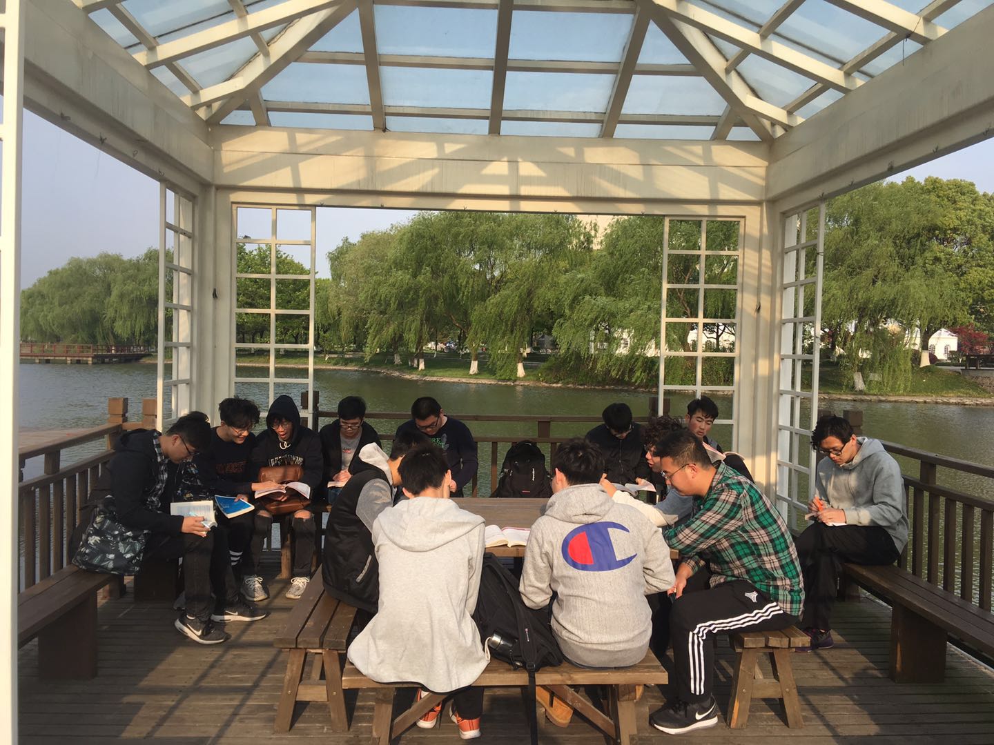 4月每天早晨7点左右,同学们不顾困意,伴着清晨的阳光,在学校池塘旁、凉亭里,大声朗读。同学们晨读内容充实,晨读精神饱满。他们朗朗的读书声为学校的清晨增添了不少生气。同学们表示此次晨读活动帮助他们养成了良好的学习习惯,克服了懒惰松散的坏习惯。少年易老学难成,一寸光阴不可轻。同学们用朗朗书声装点青春岁月,奕奕神采唱响青春赞歌! 希望作为国家建设栋梁之才的青年学生,能够充分弘扬中国优秀传统——严律己、能吃苦的精神,将这种精神始终贯穿于生活、学习中,奋发图强,将中华民族伟大的复兴梦与自己的梦想紧密结合,让每天清晨的朗朗读书声成为开启实现梦想的第一步!